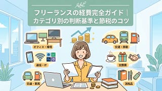 フリーランスの経費をカテゴリ別に解説。家事按分・車・PC・交際費・消耗品など、何が経費になるかの判断基準と節税のコツを網羅。経費計上漏れを防いで手取りを増やすための完全ガイド。