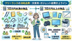 税込10万円未満のデスクやチェアは、消耗品費として購入した年に全額経費計上できます。これがいちばんシンプルな処理です。