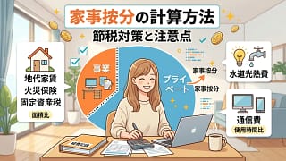 確定申告・税金 家事按分の計算方法|家賃・光熱費・通信費の按分率と税務調査対策 家事按分の計算方法を費目別に解説。家賃・電気代・通信費の按分率の目安や計算例、会計ソフトでの設定方法、税務調査で否認されないための記録の残し方まで、フリーランス向けにわかりやすく整理しました。 2026.04.02 確定申告・税金