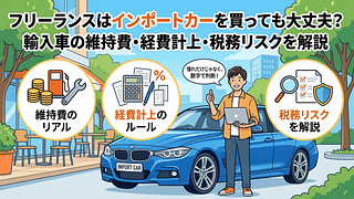 フリーランス フリーランスが輸入車を経費にするには?維持費・減価償却・税務調査リスクまで徹底解説 フリーランスが輸入車を買うのはあり?BMW・ベンツなどの年間維持費は国産車より12〜27万円高。経費計上の3条件、4年落ち中古の節税メリット、税務調査で指摘されやすい3つのポイントを具体的な数字で解説。 2026.03.16 フリーランスフリーランス向け節税節税